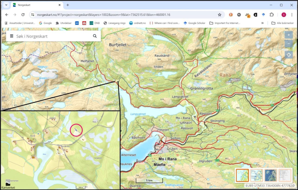 Melfjord. Følg Langvassveien til Ramnåga, følg skilt til Skolen.